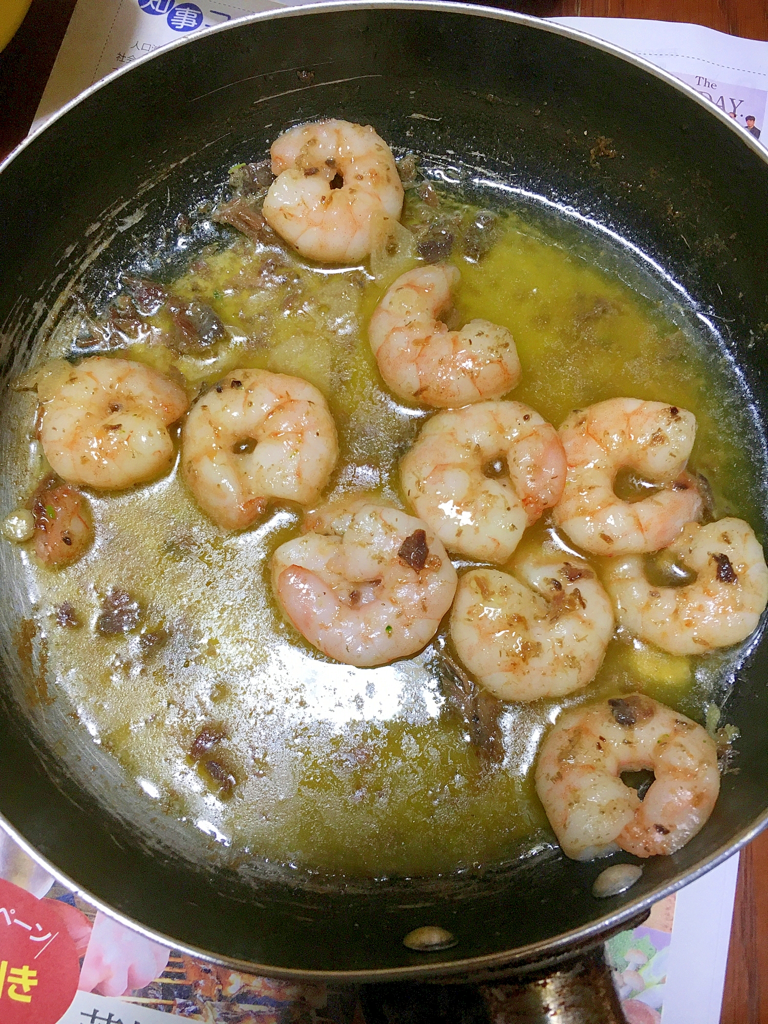 大人から子供までみんな大好き エビ料理ガーリックシュリンプ 週末レシピ オリーブオイルをひとまわし