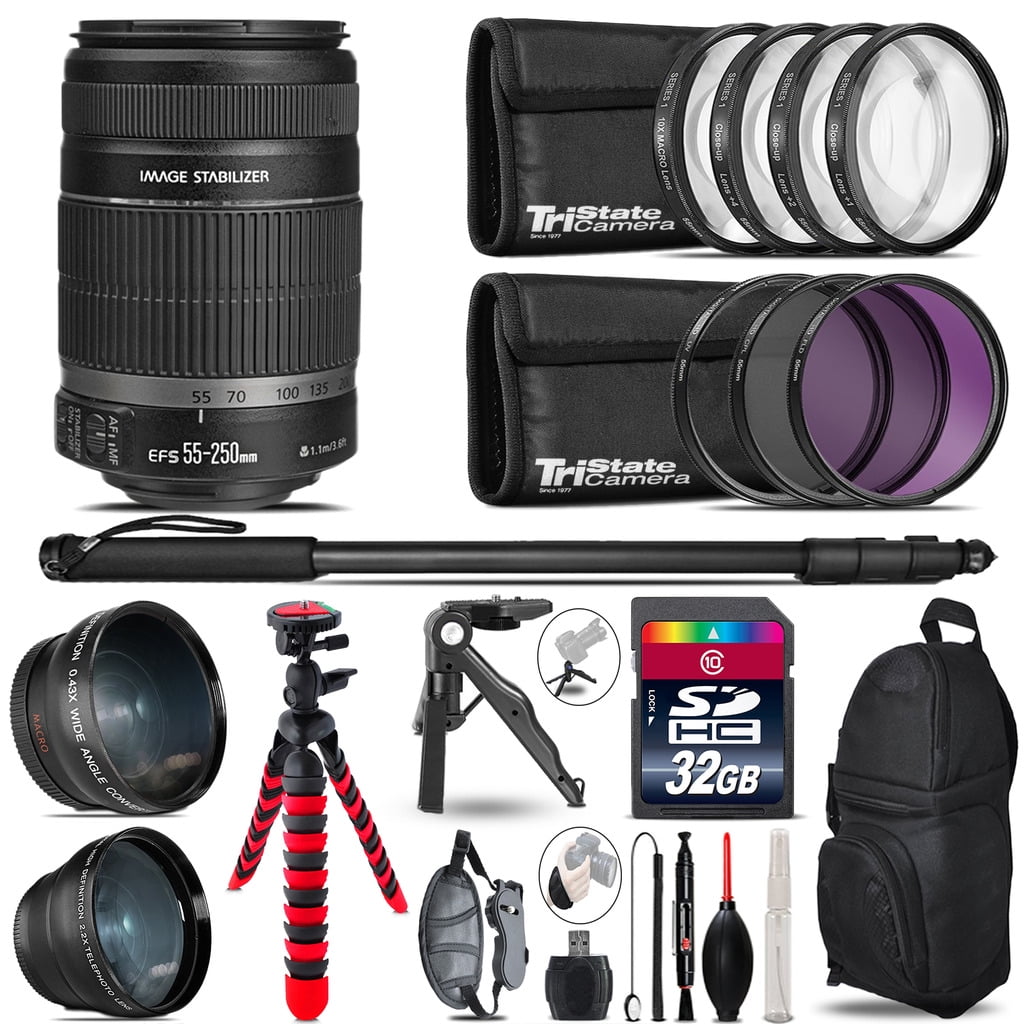 Canon Ef S 55 250 Is Ii 3 Lens Kit Tripod Backpack 32gb Accessory Bundle Walmart Com Walmart Com