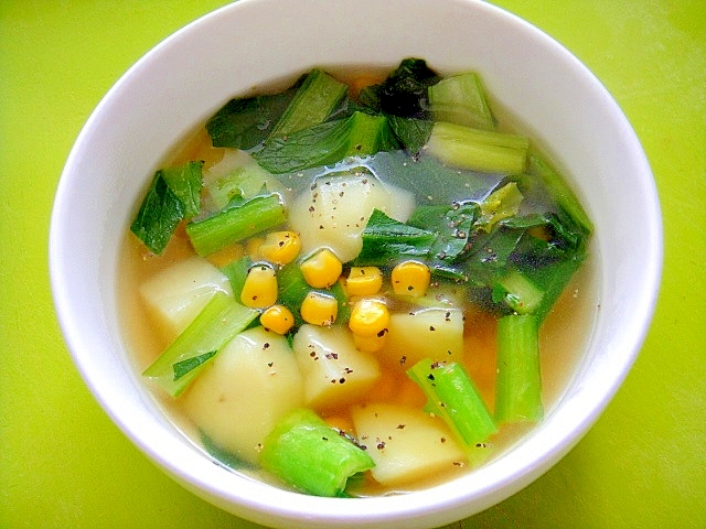 じゃがいもと小松菜とコーンのコンソメスープ レシピ 作り方 By Mint74 楽天レシピ