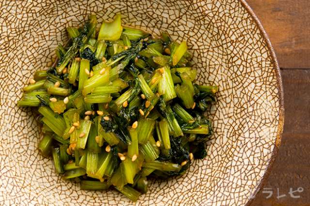 野菜ひとつ かぶの葉の練りごま塩昆布和え 週末の作り置きレシピ